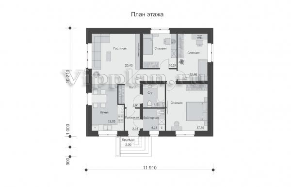 | Размеры дома: | 11.21м×11.91м |